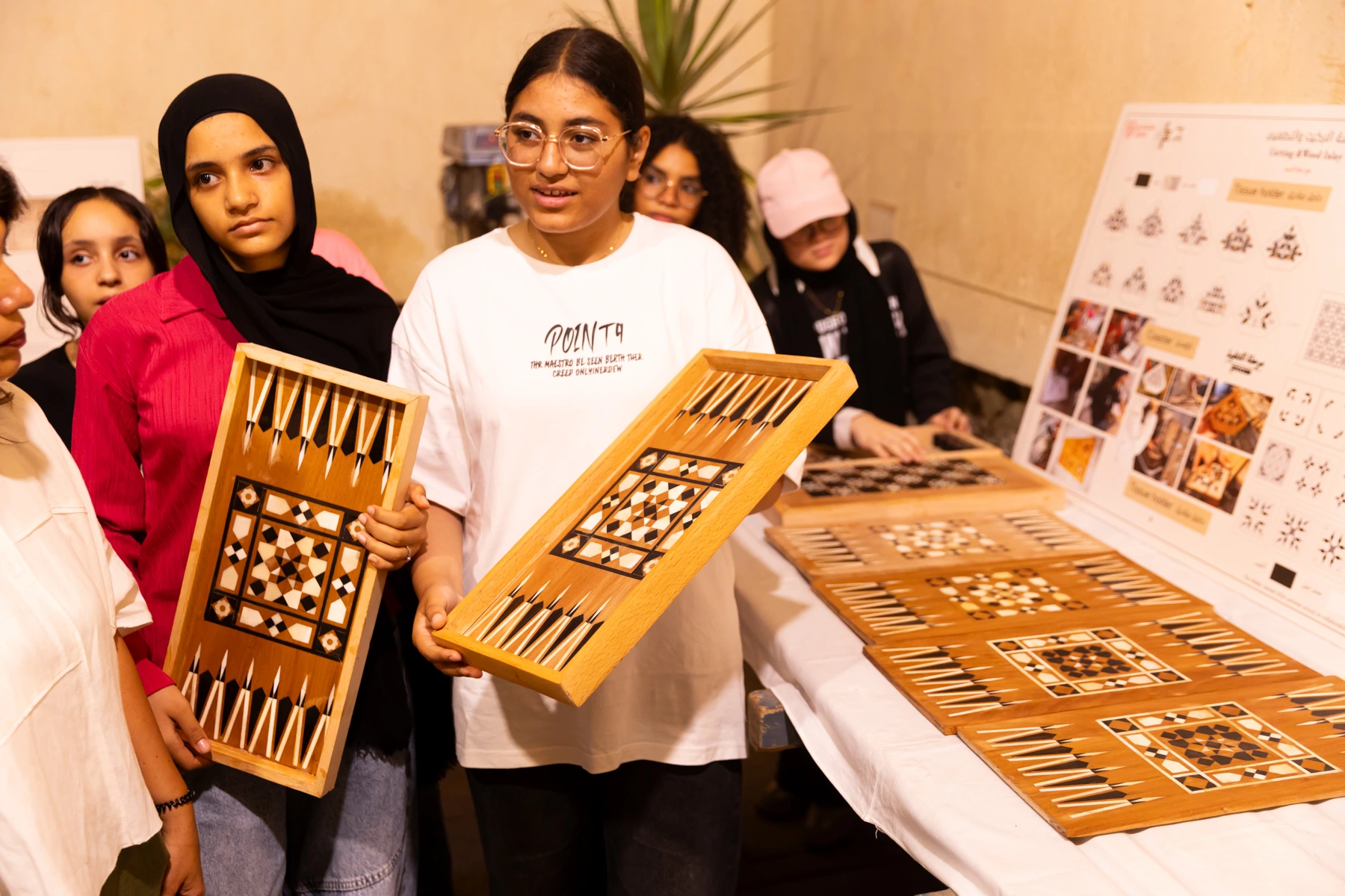 Participants will explore traditional craftsmanship by producing handmade backgammon sets rooted in Cairo’s design heritage, having developed skills in geometric design, Arabic calligraphy, brass inlay, wood veneer and stencil printing.